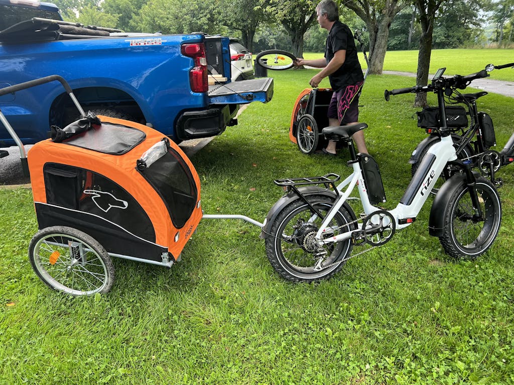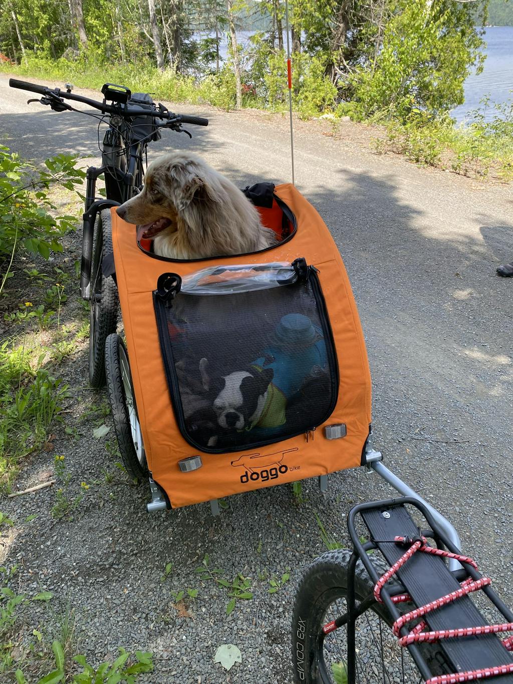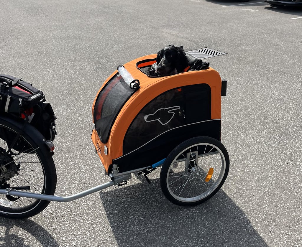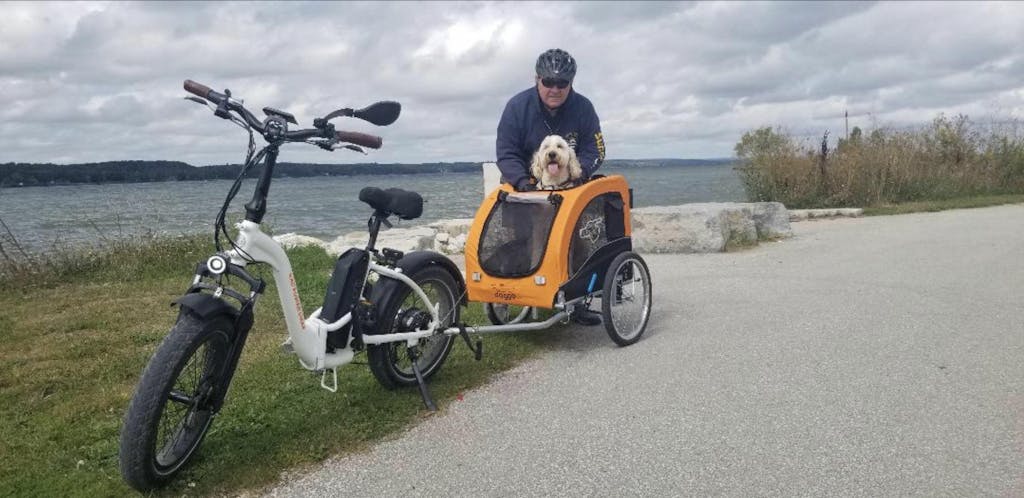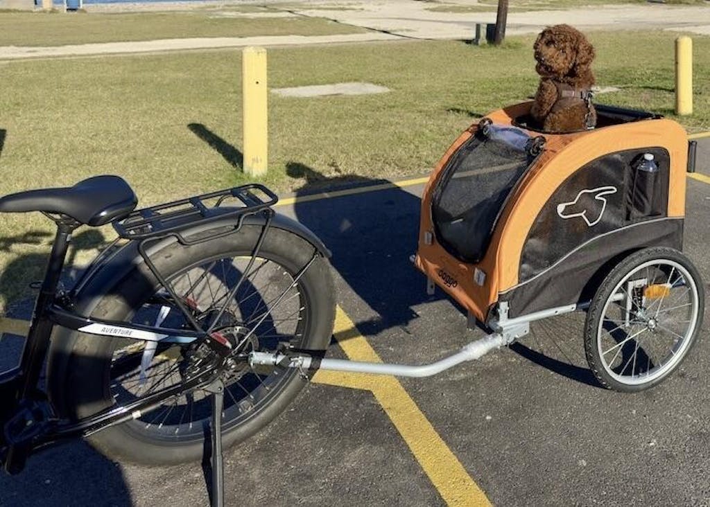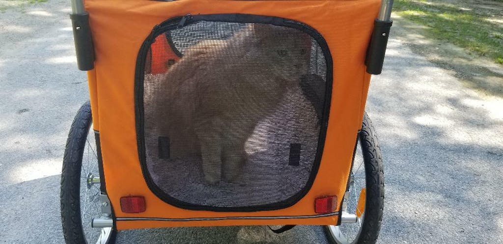 I recently purchased the large dog trailer for my big boy Tucker and can’t be more pleased with it. As an E bike owner and somebody who loves to camp, it was getting stressful for Tucker to have to stay behind with others while I went out for a bike ride around the park. At nine years of age, he has become overly cautious with everything and stressing him out when I was leaving the campsite on my own. His introduction to the trailer was very motivated by treat, and once he figured out how to get in and get his head out of the top at the same time. He realized that it wasn’t as bad as he thought it would be. Would highly recommend this product and while others may say it is a cost that may be something they don’t want to have to pay out, in the long term it will only benefit your relationship with your dog and also alleviate stressors with them as well to be with you. Enjoy the ride everyone!