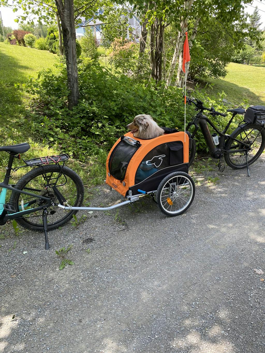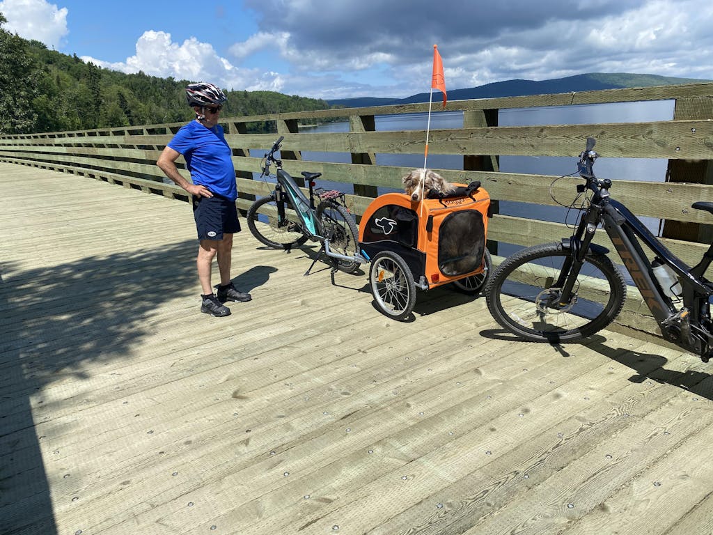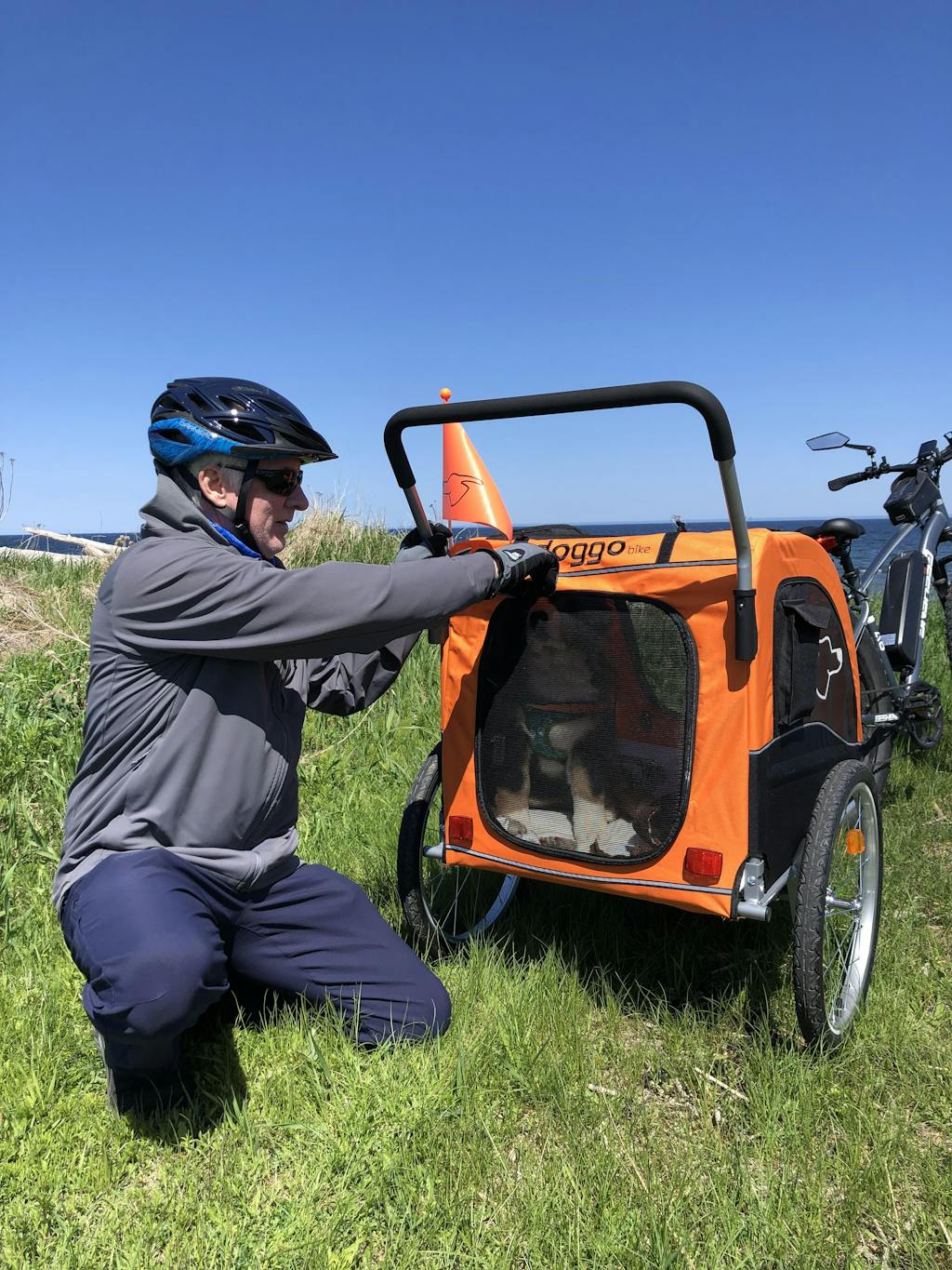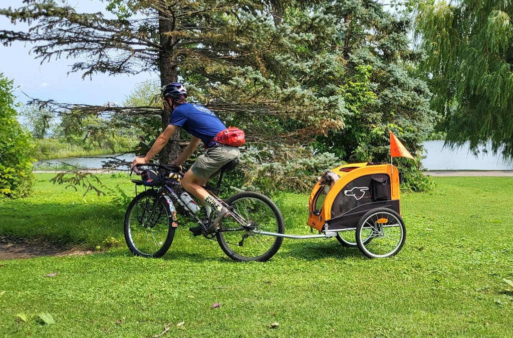 I recently purchased the large dog trailer for my big boy Tucker and can’t be more pleased with it. As an E bike owner and somebody who loves to camp, it was getting stressful for Tucker to have to stay behind with others while I went out for a bike ride around the park. At nine years of age, he has become overly cautious with everything and stressing him out when I was leaving the campsite on my own. His introduction to the trailer was very motivated by treat, and once he figured out how to get in and get his head out of the top at the same time. He realized that it wasn’t as bad as he thought it would be. Would highly recommend this product and while others may say it is a cost that may be something they don’t want to have to pay out, in the long term it will only benefit your relationship with your dog and also alleviate stressors with them as well to be with you. Enjoy the ride everyone!