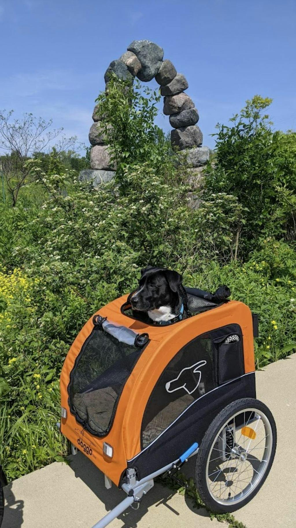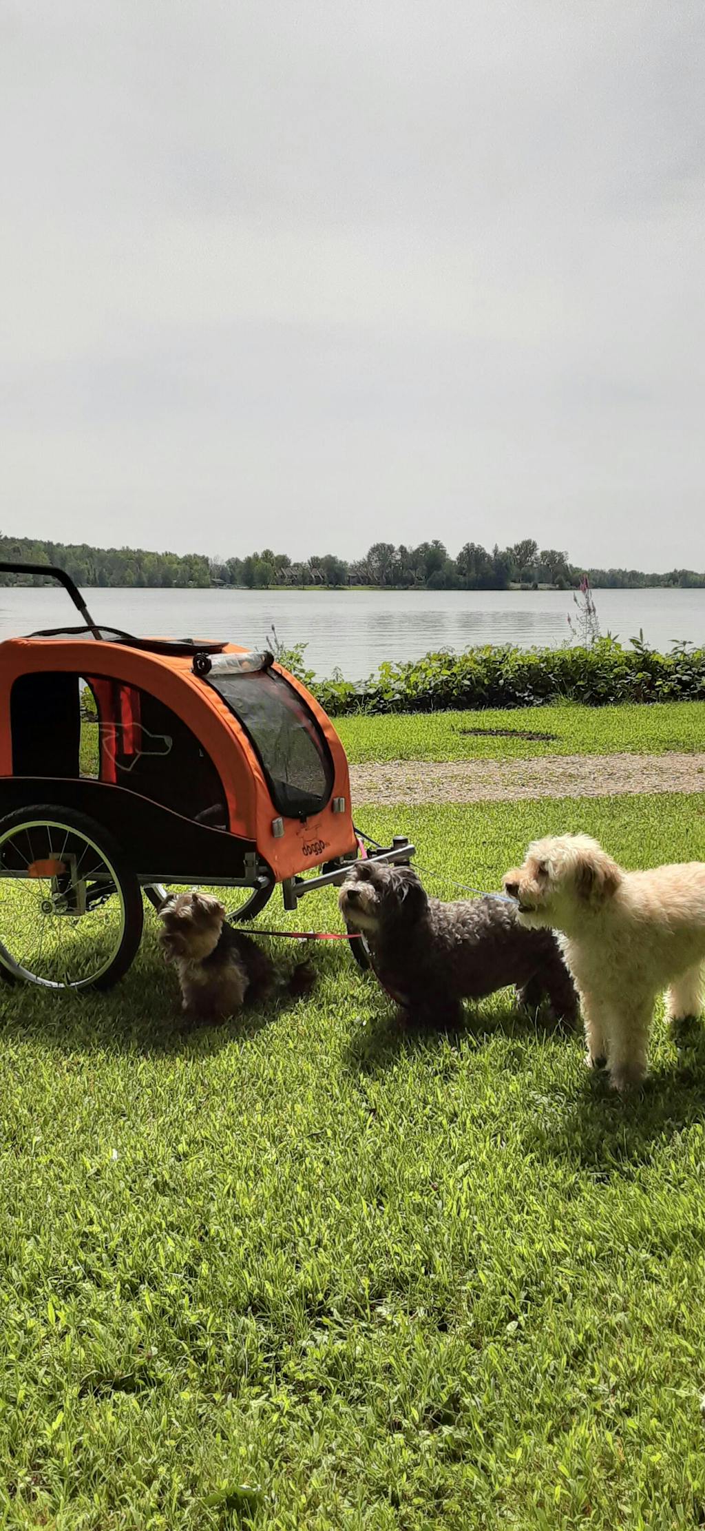 Nous sommes très satisfaits du chariot, il est sécuritaire et facile à monter et à installer. Les chiens sont heureux de nous suivre en ballade sur les divers sentiers que nous explorons en camping .