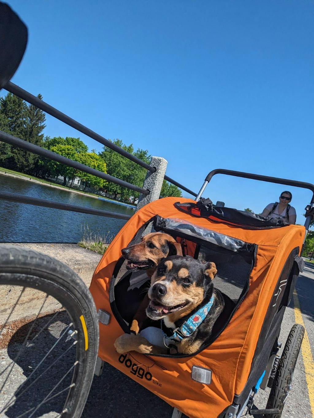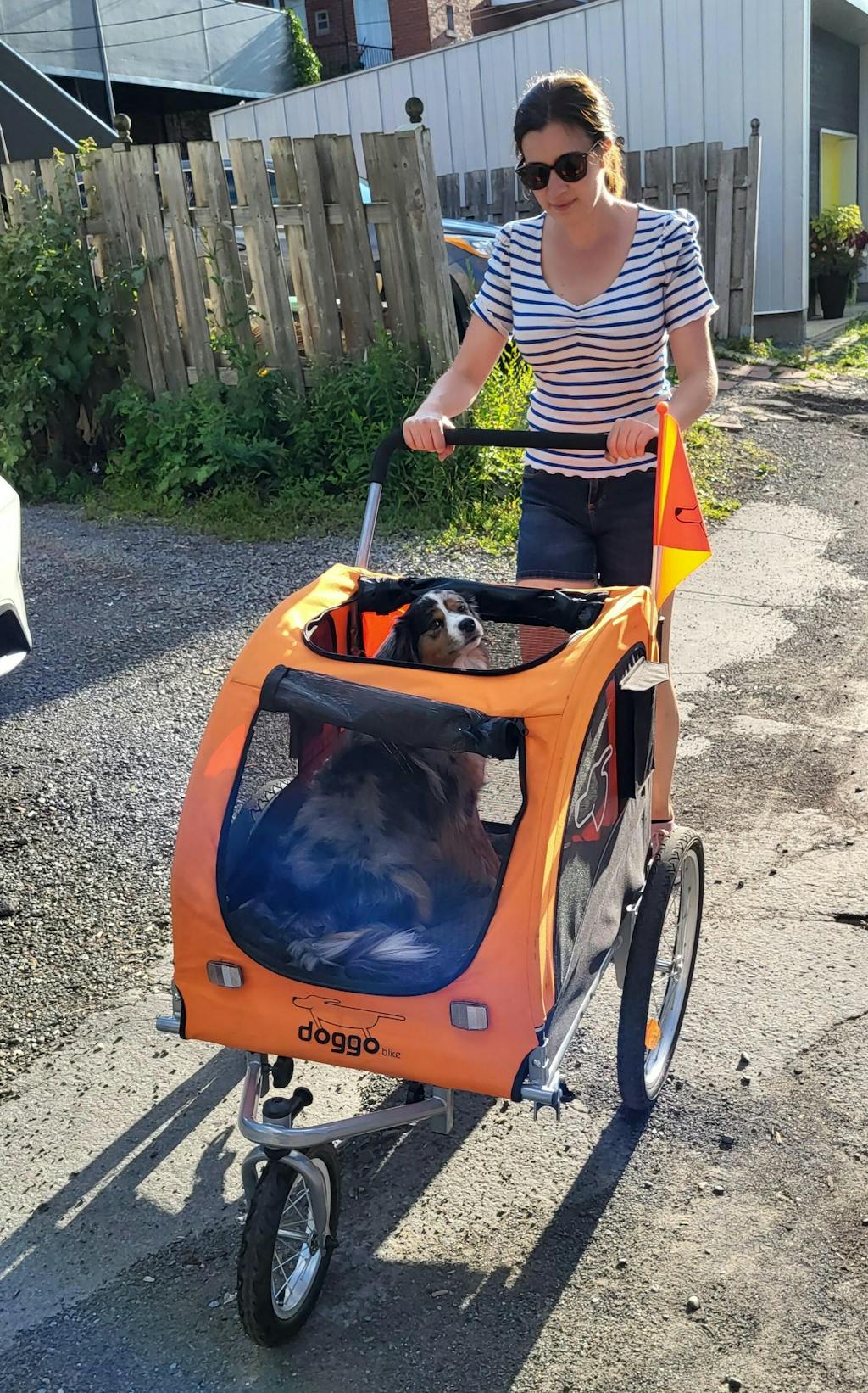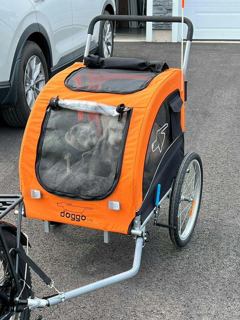 I researched endlessly for a bike trailer, initially not wanting to spend the extra money on the Doggo but I came to my senses and "splurged"... now I am SO GlAD I did. Our puppy is not yet fully vaccinated so right now we are using the stroller attachment DAILY. She now gets the experience of daily walks without the risk of paws on the ground. We are also starting to sensitize her to the bike trailer as well while she is young and fearless. And with all this, I can tell you, the quality of the Doggo is UNmatched! They have though of everything! It is stable, has durable mesh( which holds up to baby shark teeth), and has multiple entry points which is so smart. I can't think of a single thing I would change in the design. Thank you for making such a quality product in a world of mostly sub-standard quality!